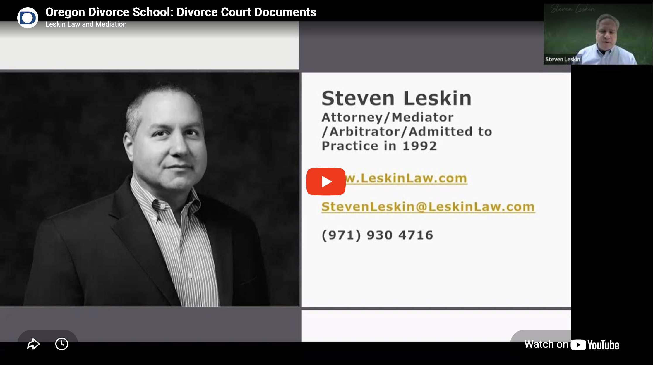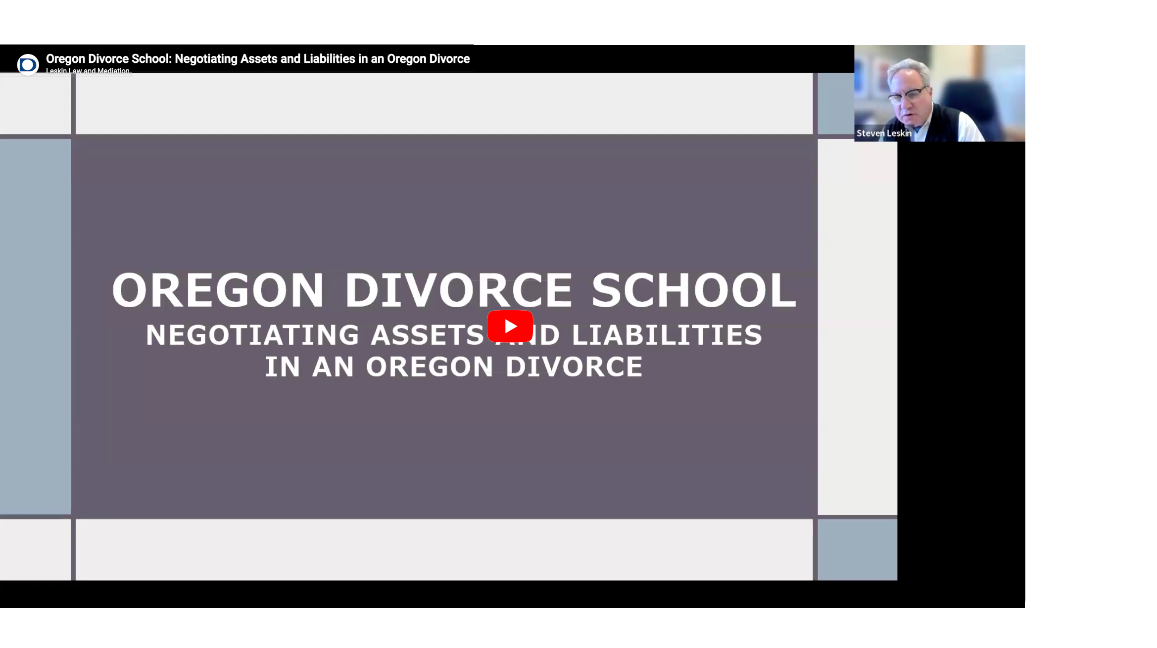 Oregon Divorce School - Graduating You to a Better Life. This class will explore preparing for a divorce. Divorce School, offered by Portland Oregon attorney Steven Leskin, is a comprehensive guide to Oregon divorce law. Each webinar examines a particular legal topic in depth. Each webinar focuses on practical ...