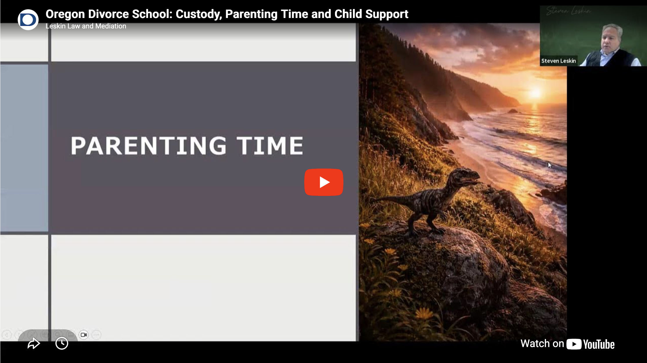 Oregon Divorce School - Graduating You to a Better Life. In any divorce with children, the court needs to make decisions about Custody, Child Support and Parenting time. This class is an overview of the laws governing kids in divorce court. Divorce School, offered by Portland Oregon attorney Steven Leskin, ...
